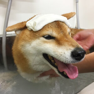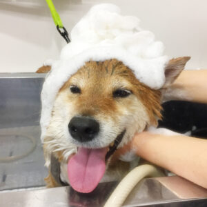 柴犬のりくちゃんがシャンプーコースと