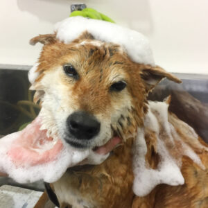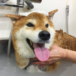 柴犬のりくちゃんが、シャンプーコースと