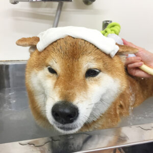 柴犬のりくちゃん、シャンプーコースと炭酸泉スパとマイクロバブルバスでご来店♪