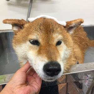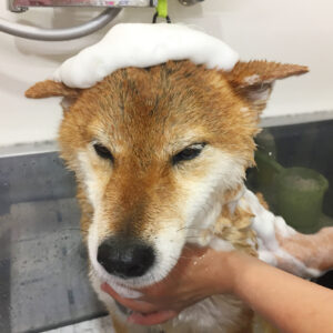 柴犬のりくちゃんが、シャンプーコースと