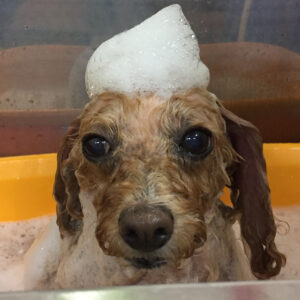 トイプードルのモコちゃんがシャンプーコースと