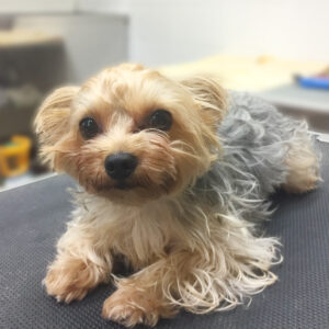 いつものように全身を軽くカットして、顔はヨーキー風にしました。