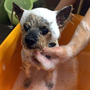 持参された薬用シャンプーできれいに洗って
